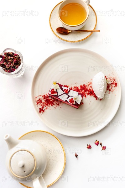 Десерт «Сакура» с вишневым зефиром, белым шоколадом и мороженым