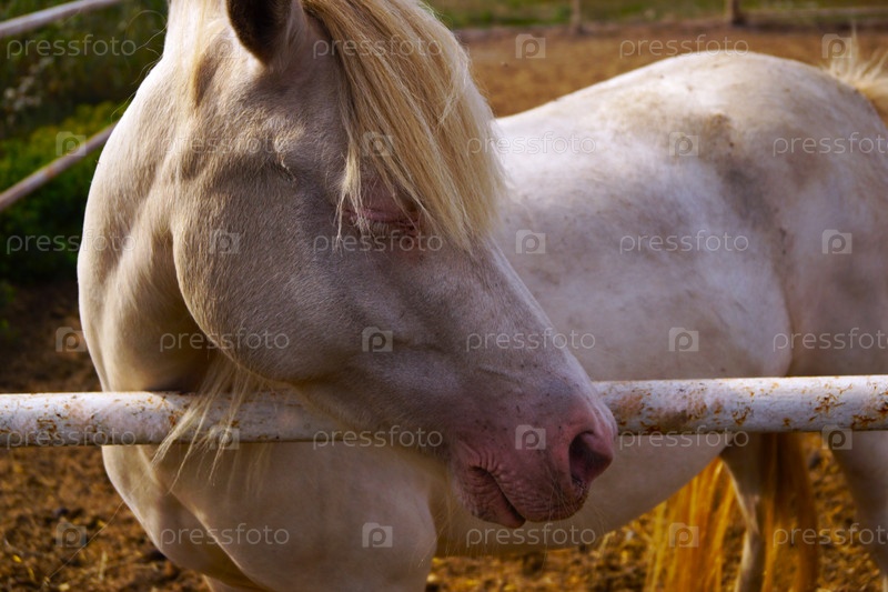 Белая застенчивая лошадь