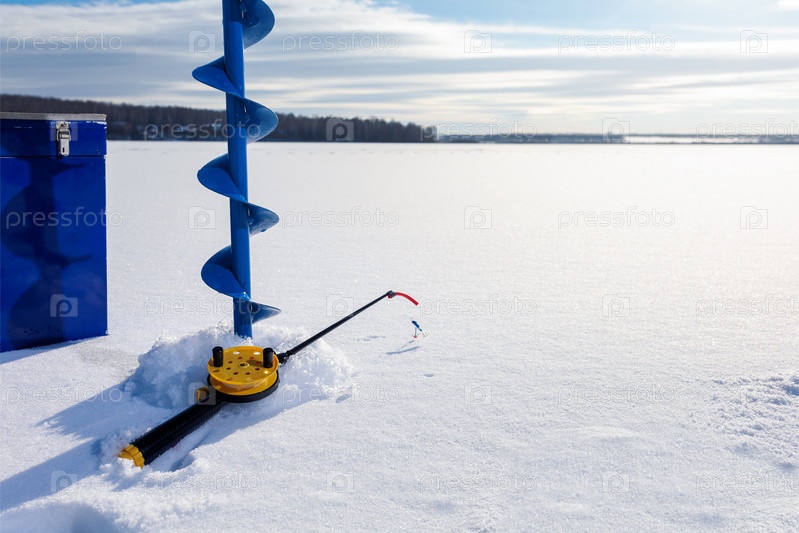 Фон подледной рыбалки. Концепция зимней рыбалки с местом для текста