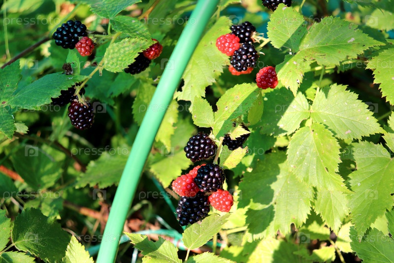 Созревающие ягоды ежевики на кусте в солнечном свете - горизонтальное фото