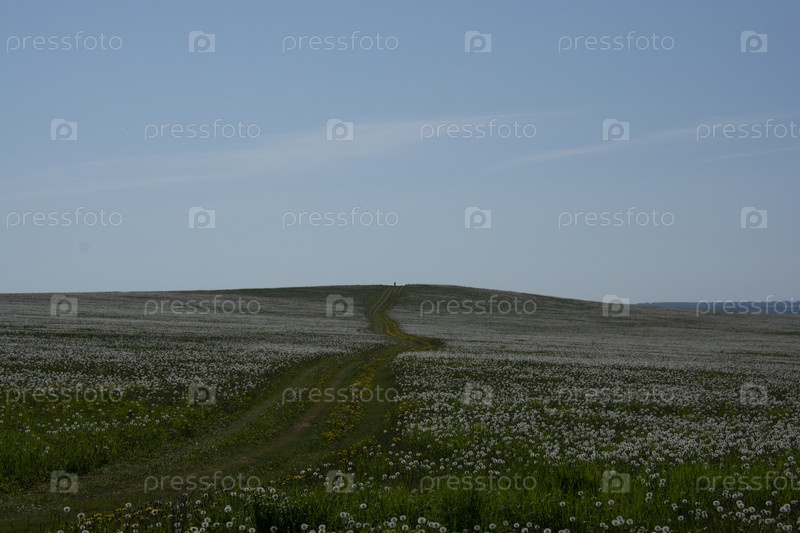 Дорога в поле с одуванчиками