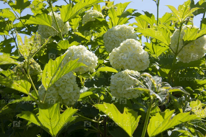 Соцветия и листья гортензии, освещенные солнцем