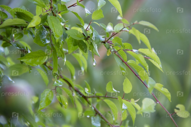 Листья с каплями воды после дождя