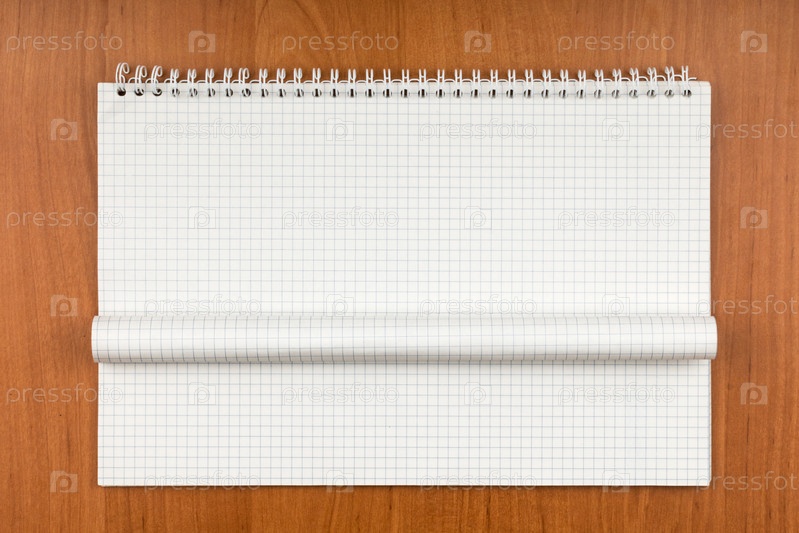 Блокнот на спирали со скрученным листом лежит на столе