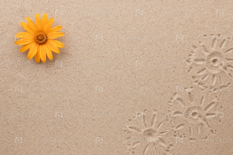 Отпечаток полевых цветов на песке. Концептуальное изображение