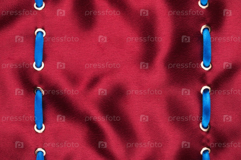 Модный красивый фон, синяя атласная лента, вставленная в красную атласную ткань