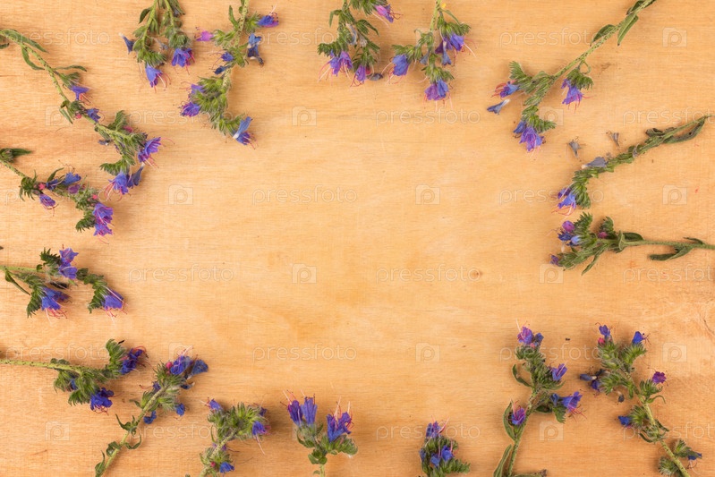 Красивые полевые цветы на деревянном фоне. Рамка из цветов