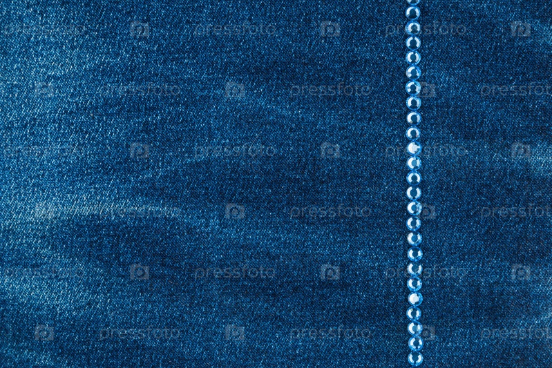 Линия синих стразов, инкрустированных на джинсовой ткани. С местом для текста