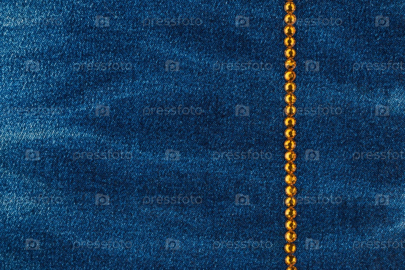 Линия желтых стразов, инкрустированных на джинсовой ткани. С местом для текста