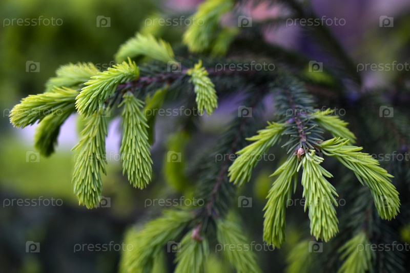 Ветки ели с шишками. Яркие и красочные иголки и шишки в лесу