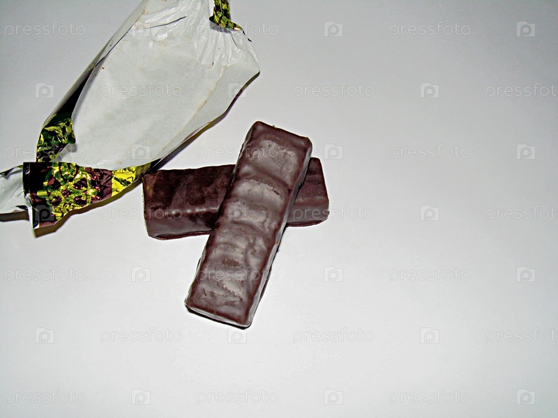 Шоколадные конфеты на белом фоне