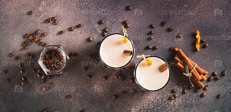 Коктейль «Карахильо» из эспрессо и ликера в стаканах на столешнице веб-баннер