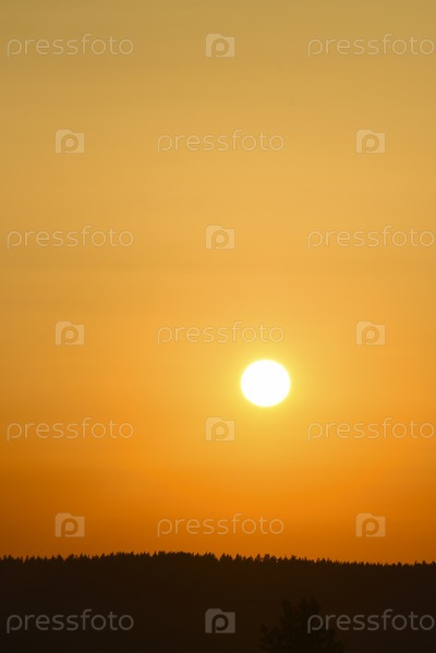 Красный закат. Заходящее солнце над лесом летом