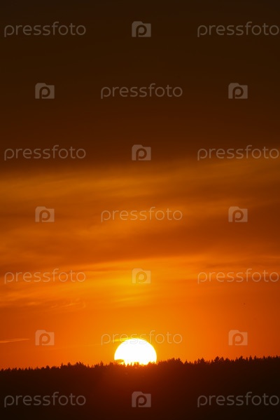 Красный закат. Заходящее солнце над лесом летом