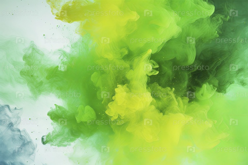 Зеленый красочный фон дыма, святой порошок. смешанный радужный порошок. концепция макияжа, декоративная косметика