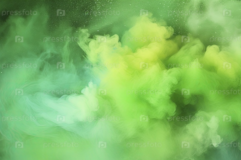Зеленый красочный фон дыма, святой порошок. смешанный радужный порошок. концепция макияжа, декоративная косметика