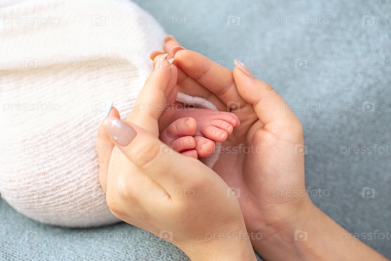 Ноги новорожденного. Концепция материнства. День матери. Копировальное пространство. Ноги новорожденного. Концепция материнства. День матери. Копировальное пространство. Избирательный фокус