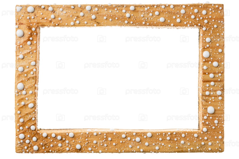 Красивая деревянная рамка в каплях белой краски. Изолирована на белом фоне