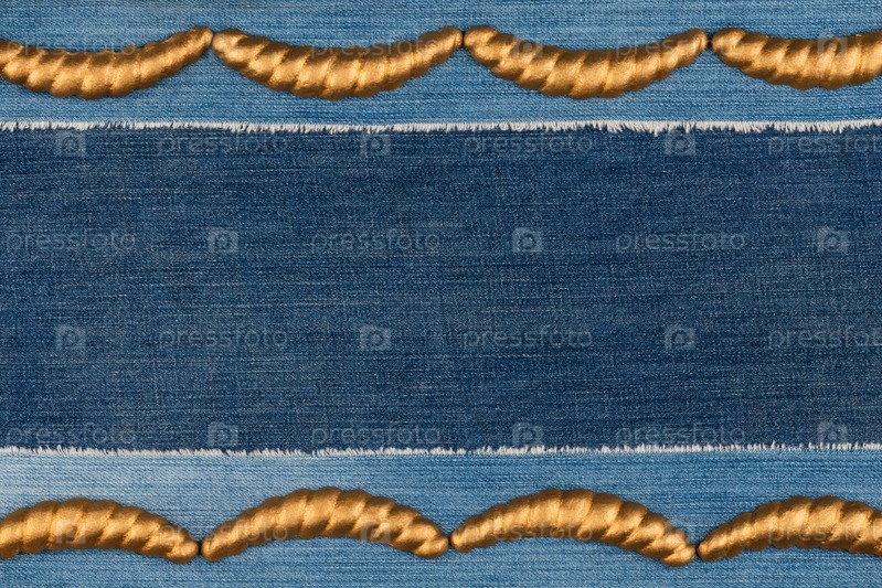 Роскошная рама из золотой лепнины, лежащей на джинсовой ткани