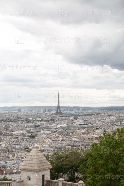Прекрасный вид на Париж и Эйфелеву башню из базилики Сакре-Кер