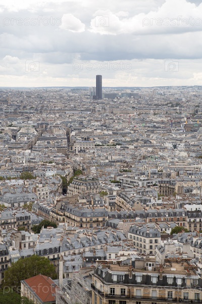Прекрасный вид на Париж и башню Монпарнас из базилики Сакре-Кер