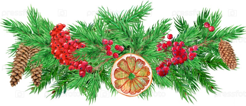 Рождественские украшения. Праздничная композиция из рождественской гирлянды на белом фоне