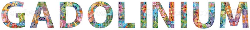 Слово ГАДОЛИНИЙ. Это химический элемент. Нарисованная от руки надпись. Векторный текст