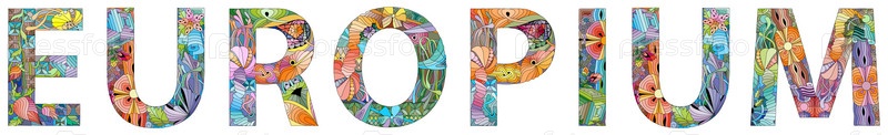 Слово ЕВРОПИЙ. Это химический элемент. Нарисованная от руки надпись. Векторный текст