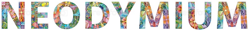 Слово НЕОДИМ. Это химический элемент. Нарисованная от руки надпись. Векторный текст