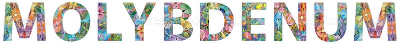 Слово МОЛИБДЕН. Это химический элемент. Нарисованная от руки надпись. Векторный текст