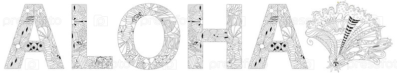 Буквы индивидуального написания слова Aloha, изолированные на белом фоне, типография приветствия на гавайском языке, векторная иллюстрация дизайна