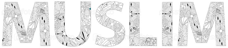 Ручная роспись арт-дизайна.Ручно нарисованная иллюстрация слова МУСЛИМ на футболке и других украшениях