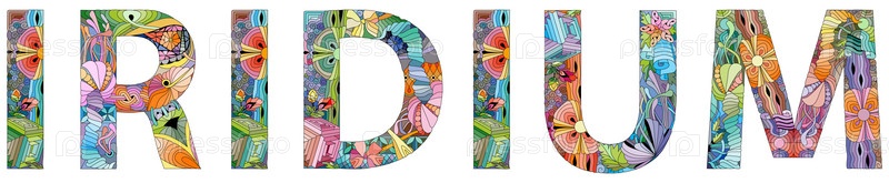Слово ИРИДИЙ.Это химический элемент.Векторный зэнтэнгл объект для украшения