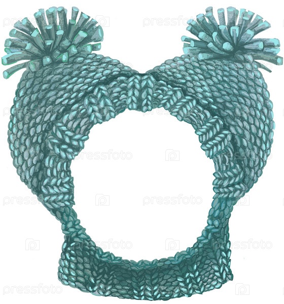 Шапка зеленая кошачья вязаная с ушками. Акварельная иллюстрация