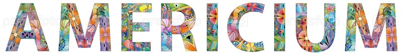 Ручная роспись художественного дизайна.Ручно нарисованная иллюстрация слов AMERICIUM для футболок и других украшений