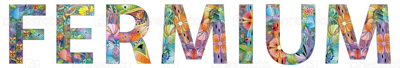 Слово ФЕРМИЙ. Это химический элемент. Цветное векторное слово, изолированное на белом фоне