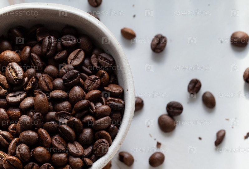 Свежеобжаренные кофейные зерна, вид сверху