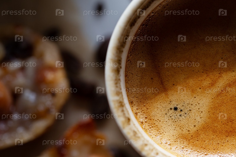 Ароматный и свежеприготовленный эспрессо, крупный план