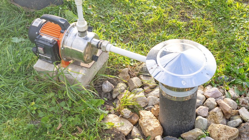 Насос подключен к трубе, которая находится в земле