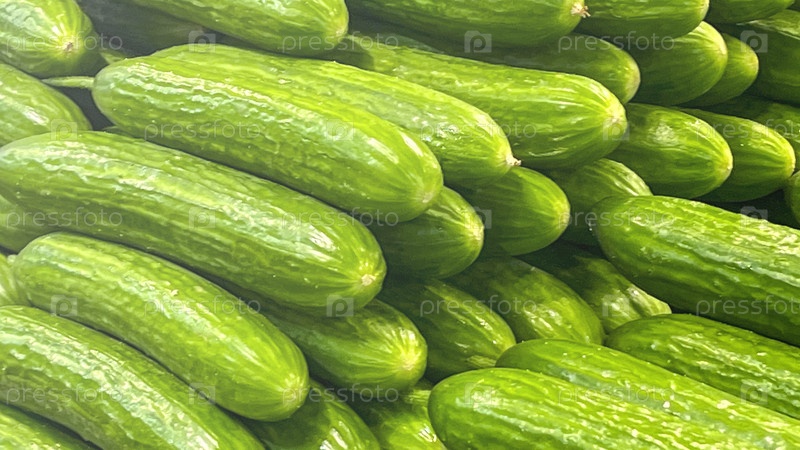 Пучок зеленых огурцов сложен друг на друга