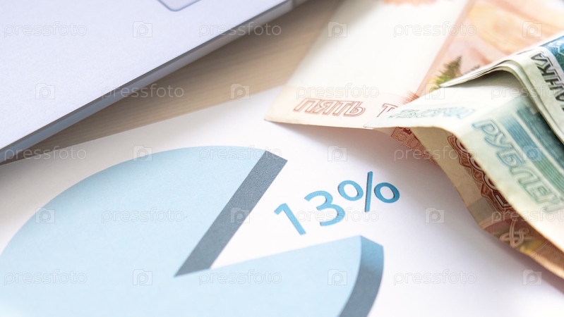 Круговая диаграмма на листе бумаги с долларовой купюрой наверху