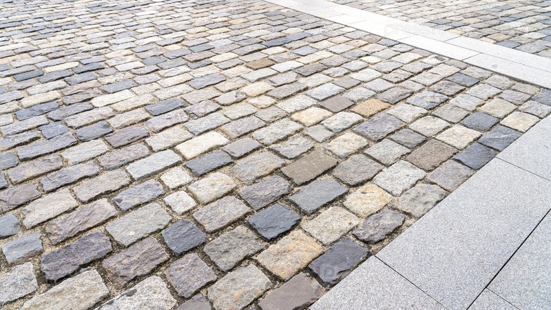 Серо-белый мощеный тротуар с серо-белой окантовкой