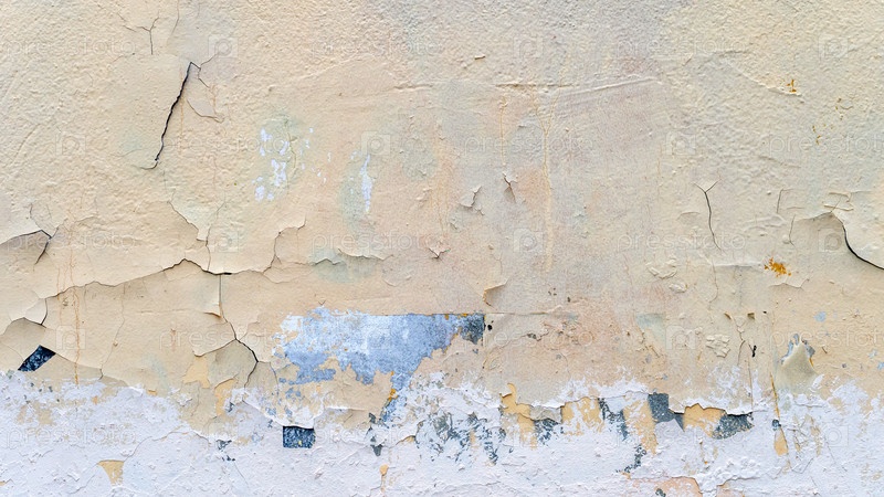 Текстура старой серой обшарпанной стены, крупный план, Большой кусок штукатурки отошел от стены