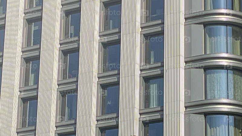 Высокое здание со множеством окон и изогнутой крышей