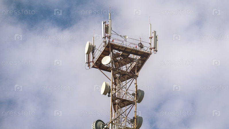 Высокая башня со множеством антенн наверху