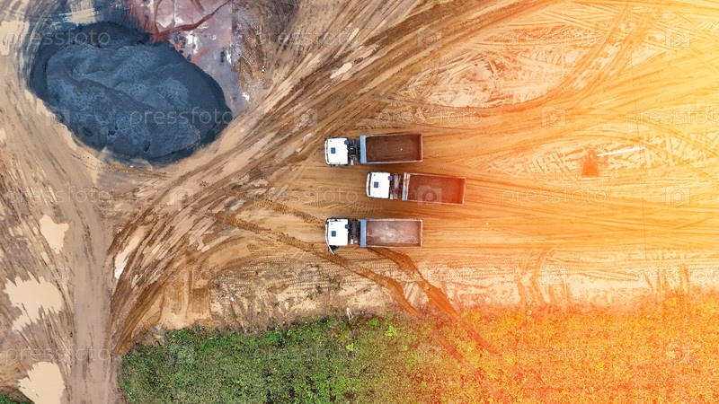 Грунтовая дорога с тремя грузовиками на ней