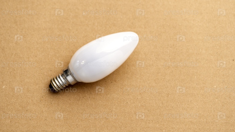 Белая лампочка стоит на коричневой поверхности