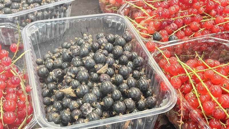 Поднос с черникой и поднос с красными ягодами