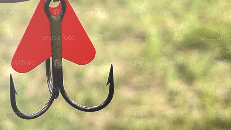 Красный крючок с красной биркой на нем