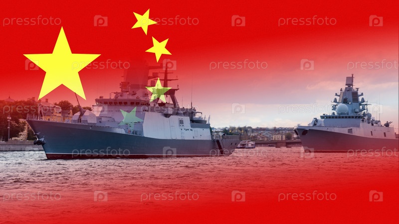 Китайский военный корабль на фоне флага, Военные корабли Китая